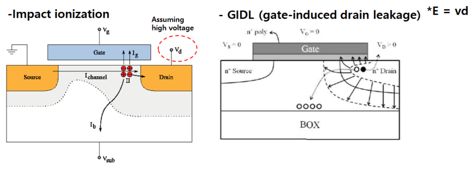 다음으로 Impact ionization과 GIDL에 대한 개념으로..... GIDL은 발표한지 오래되어 제대로 기억나지 않는다. 좀 더 빨리 리뷰를 작성하도록하자.