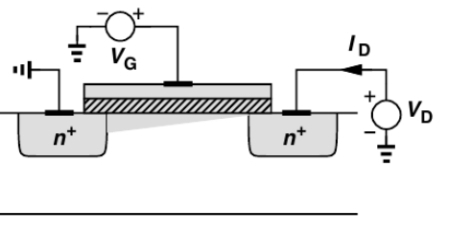 이 상황에서 Vgs에도 전압을 인가해주면 오른쪽 그림처럼 potential이 형성됨을 예상할 수 있다.
