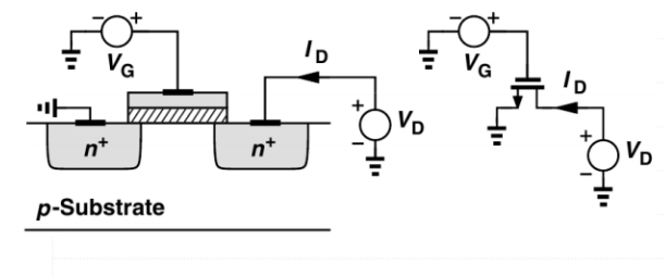 보통 Gate에 높은전압, body에 낮은전압(0V)를 걸어준다. 회로쟁이들의 단순한 약속인줄 알았으나 여기에도 이유가 있었다. p-substrate와 n-type의 source 및 drain의 경우, p-sub에 낮은 전압을 인가해야만 p-n간의 reverse bias가 형성되어 원치않는 전류가 흐르는걸 막을 수 있다. 반대로 n-type sub의 경우 이와 같은 맥락으로 body에 더 높은 전압을 걸어준다.